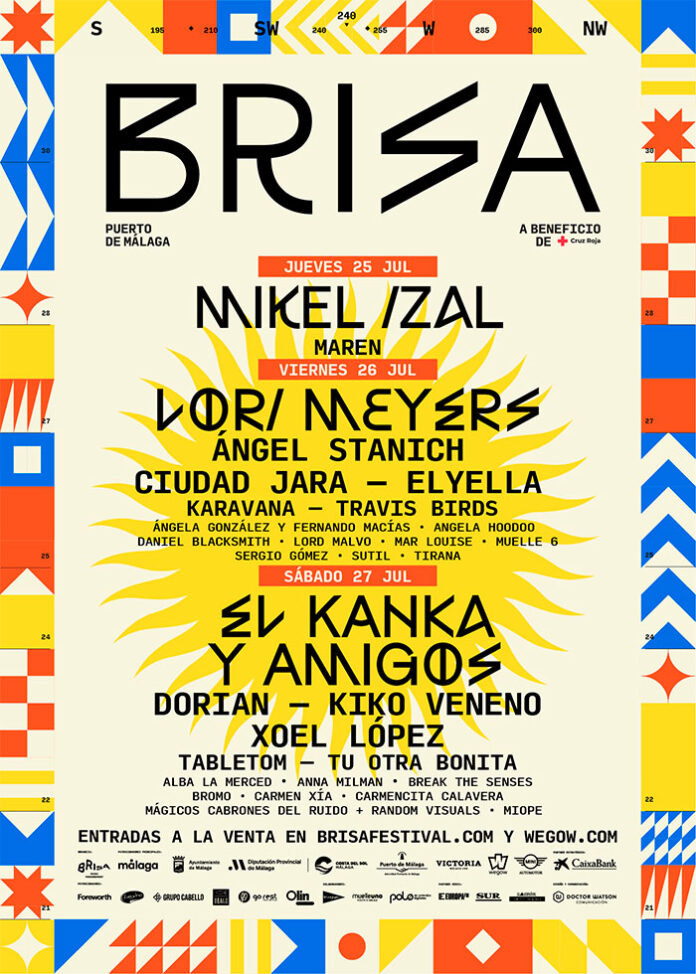 Brisa Festival es una iniciativa solidaria a beneficio de Cruz Roja que cuenta con el patrocinio principal del Ayuntamiento de Málaga, la Diputación Provincial de Málaga, Málaga de Moda, Turismo Costa del Sol, Puerto de Málaga, Cervezas Victoria, Wegow, Mini Automotor y CaixaBank como Partner Estratégico. Además, dispone de los patrocinios de Foreworth, Famadesa, Grupo Cabello, Ubago, Go Rest y Olin. Colaboran El Corte Inglés, Muelle Uno y Polo de Contenidos Digitales. |