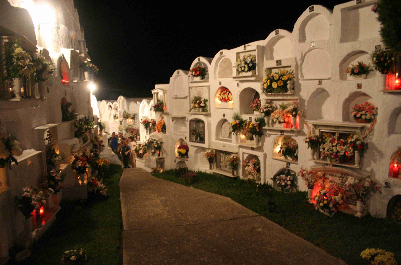 Actualmente los vecinos visitan el cementerio en la víspera del Día de los Difuntos desde el atardecer hasta poco después de la media noche y acostumbran a colocar flores frescas e iluminar los nichos.