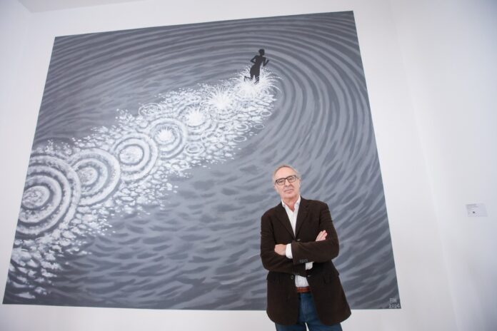 Jorge Fin ha sido el artista seleccionado para intervenir en la pared frontal a la escalera de acceso a la exposición de la Colección del Museo Ruso dentro de la programación de MaF – Málaga de Festival 2024. La inauguración de esta intervención ha tenido lugar hoy con la presencia del artista, del director de la Agencia Pública para la gestión de la Casa Natal de Pablo Picasso y otros equipamientos museísticos y culturales, José María Luna; y del director del Festival de Málaga, Juan Antonio Vigar.