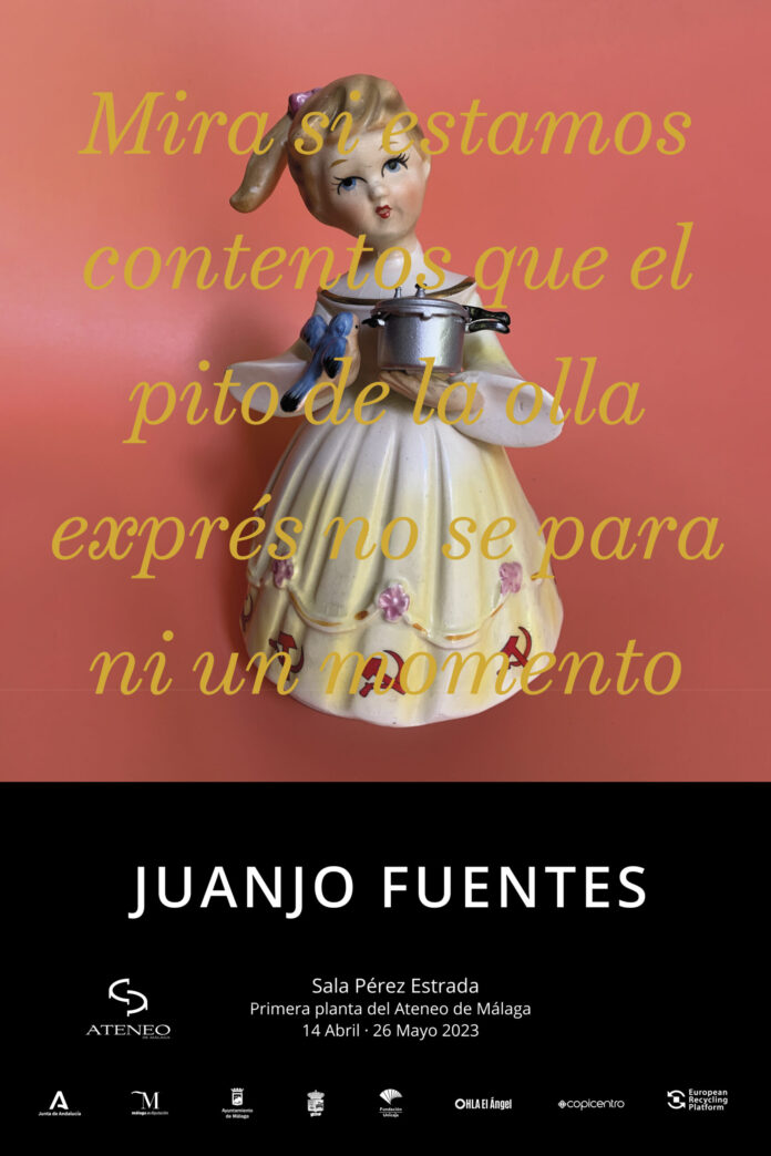 Mira si estamos contentos, que el pito de la olla exprés no se para ni un momento, del artista Juanjo Fuentes, es una muestra que recoge 30 piezas, realizadas expresamente para esta exposición, compuesta por obras de pared y de peana de muy diversos materiales, como porcelana, fotografía, video, miniaturas bordadas, etc, que el artista toma como base para crear un objeto alternativo, con un nuevo significado. Todas ellas están realizadas entre 2021 y 2022, con las que aborda de manera literal la cuestión de género, tema central de este proyecto.
