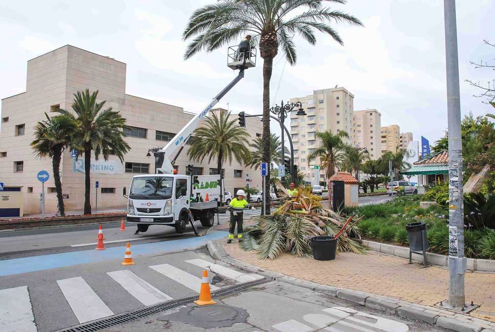 El plan de poda, que se prolongará hasta el próximo mes de febrero, ha actuado ya en algunas zonas como Seghers, Villas del Mediterráneo, Parque de Los Niños, Infanta Elena, avenida España, Paseo Marítimo o calle Real, entre otras del municipio. En estos días, los operarios de Parque y Jardines continúan en las zonas interiores de la avenida Andalucía, calle Terraza y en la prolongación del Paseo Marítimo.
