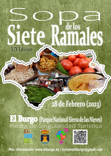 El municipio malagueño de El Burgo, ubicado en la Sierra de las Nieves, celebra el próximo 28 de febrero, Día de Andalucía, la XIX edición de la ‘Sopa de los Siete Ramales’, evento declarado Fiesta de Singularidad Turística por la Diputación de Málaga y promovido por el Ayuntamiento del municipio. Durante la jornada se desarrollarán distintos actos como la elaboración de la sopa de siete ramales, un mercadillo artesanal, visitas guiadas y actuaciones musicales, entre otras actividades.