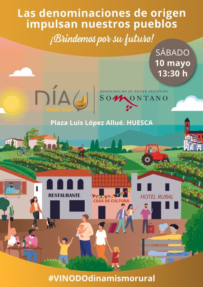 La novena edición del Día Vino DO se celebrará el sábado 10 de mayo en diferentes puntos de España, con la participación de 30 denominaciones de origen de 12 comunidades autónomas. En Huesca, la Denominación de Origen Protegida Somontano organizará actividades en la plaza López Allué desde las 12:00 hasta las 17:00 horas, coincidiendo con la apertura del tour «Somontano en ruta 2025».