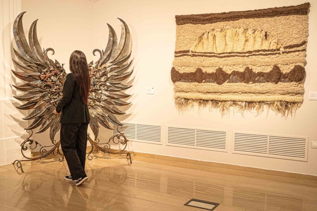 La exposición incluye los trabajos premiados de Alfonso Hidalgo Góngora y Laura Hidalgo Cruz con ‘Cruce de culturas’ en cerámica, José Antonio Pereira por ‘Soledad’ en cuero, Francisco Garrido con ‘Las alas del renacimiento que miran al sur’ en forja, Juan Manuel Molina por ‘Con razón’ en talla en madera, Ilia Mitxelena con ‘Velut umbra’ en orfebrería y joyería, y Laura Siles por ‘Iruten Har Nuzu. El ritual y el tejido, el canto y la reunión’ en tapices y textiles.