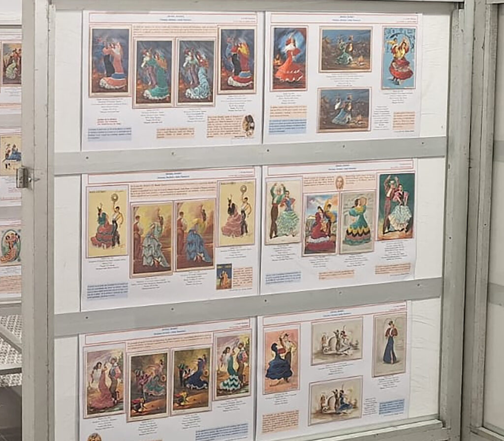 La muestra reúne más de 230 postales que reproducen imágenes del flamenco y proporciona información sobre los ilustradores, editores y bordadoras involucrados en estas piezas únicas.