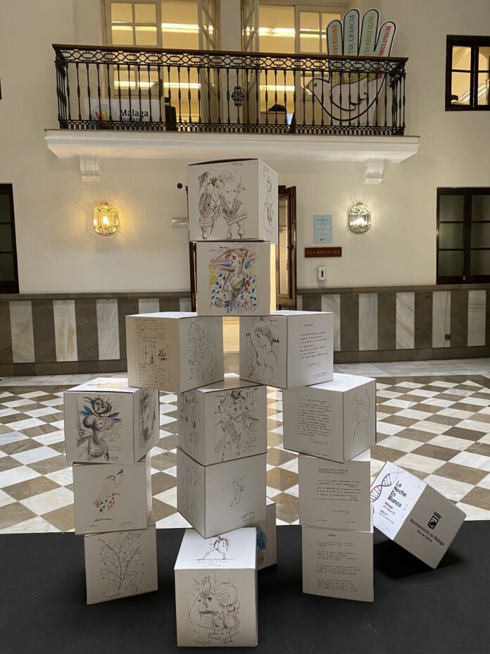La instalación ‘Los cubos del Buen Amor’ se presentó este pasado sábado en la Noche en Blanco, entroncando con el lema escogido para esta edición de 2023, ‘El gen de la Buena Vida’.