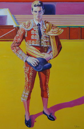 Obras del ámbito figurativo con cercana adscripción al Pop Art, el realismo mágico y el luminismo sorollano. Pinturas en óleo sobre lienzo y acrílico sobre tabla, en las que el color y la luz invaden la escena. Destacan seis óleos de 160 x 100 cm en los que él, el color, se vuelve antropomorfo, con una intensidad y una luz notables. La autora crea tipos iconográficos que respiran y proclaman españolidad: un torero, dos flamencas, una de ellas con mantón de Manila, ¡tan español!, la manola con su mantilla. Predominan las composiciones en las que la figura llena el espacio envuelta en atmósferas mágicas de vivos colores y dos de ellas con grupo de figuras en composiciones clásicas: “Así, sí” tema de la Semana Santa en la que una niña es la protagonista. Sin duda es la obra del torero, “Torero de grana y oro” la que de modo más contundente se asocia a los colores de España. En ella, el torero David Galván, vestido con los colores de la bandera de España, posa en la plaza de toros de Estepona, que los tiene a modo de enseña en su original arquitectura, convirtiéndose de este modo, esta pintura, en icono plástico de lo español.