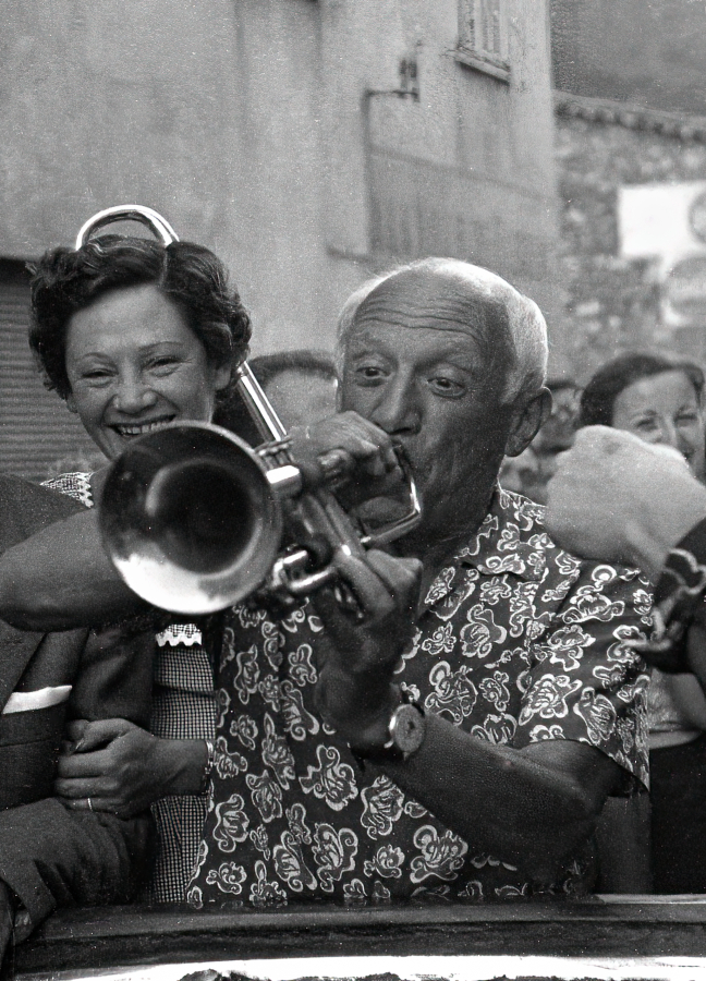 Picasso trabajando en su estudio, en sus casas, con sus mujeres, entre sus hijos, pero también Picasso con sus amigos y conocidos en los toros, en las mesas de chiringuitos o en el Festival de Cannes son algunas de las instantáneas que capturó Quinn durante los 20 años que acompañó al artista malagueño.