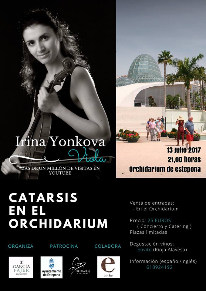 Irina Yonkoba (Bulgaria) realizará un concierto en el marca incomparable del Orquidario de Estepona interpretando diversas obras para viola dentro del concierto “Catarsis en el Orchidarium” que se celebrará el 13 de julio a partir de las 21,00horas.