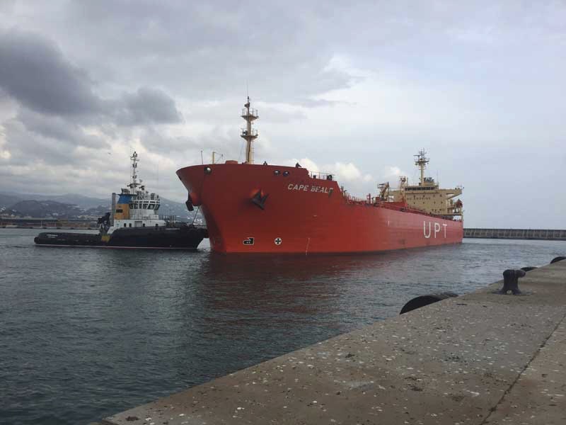 El buque petrolero MT/ CAPE BEALE, de 180 metros de eslora y 40.000 metros cúbicos de capacidad, ha hecho escala hoy en el Puerto de Málaga para descargar, por primera vez, diesel de automoción en la nueva Terminal de productos petroliferitos de Oil Distribution Terminals, situada en el muelle nº9.
