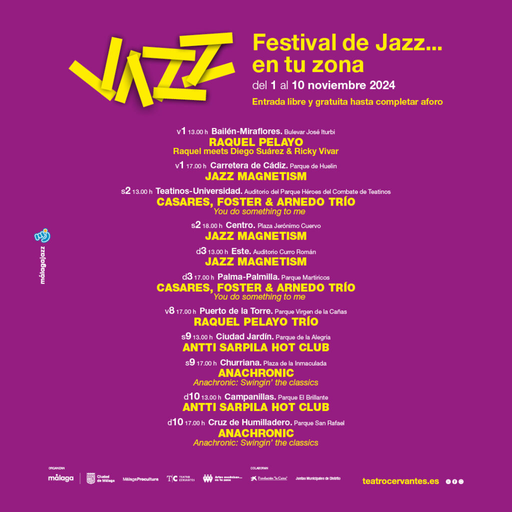 Paralelamente, el festival expandirá su alcance con el programa «Jazz en tu zona», que llevará conciertos gratuitos a los 11 distritos de la ciudad desde el 1 de noviembre. Este programa incluirá actuaciones de artistas locales como Raquel Pelayo en diferentes formaciones, el quinteto Jazz Magnetism fusionando hip-hop y jazz, y la banda del clarinetista finlandés Antti Sarpila, entre otros.
