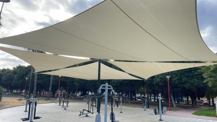El Ayuntamiento de Rincón de la Victoria instaló 328 metros cuadrados de toldos sobre el área de aparatos biosaludables del Parque Huerta Julián con una inversión de 39.275,39 euros, en respuesta a las peticiones ciudadanas realizadas a través de los presupuestos participativos.