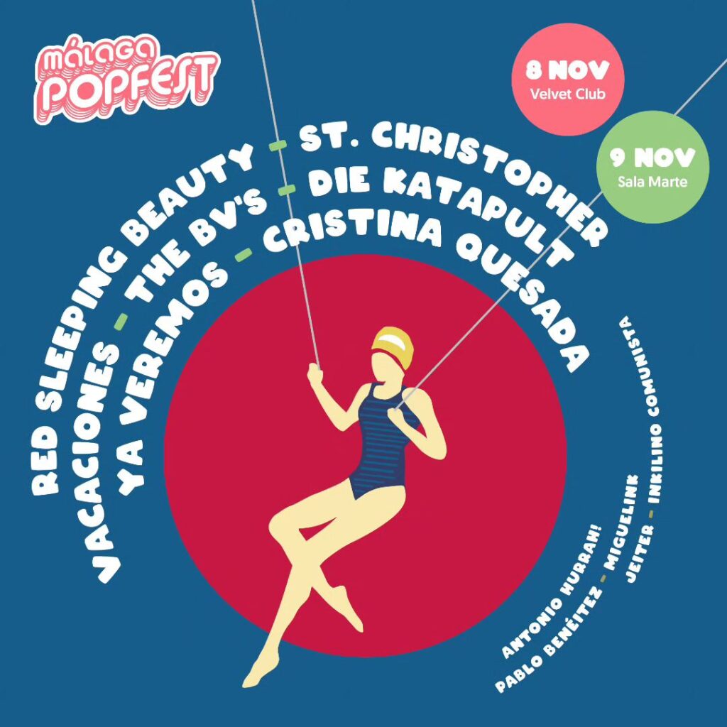 Málaga Pop Fest vuelve en 2024 y se celebra los próximos viernes 8 y sábado 9 de noviembre en Sala Velvet y Sala Marte respectivamente, con un cartel que incluye las actuaciones de la banda de York St. Chritopher; el trío de synth pop de Estocolmo Red Sleeping Beauty; y una reunión única y exclusiva para el evento de la mítica banda del indiepop nacional Vacaciones, entre sus grandes novedades.