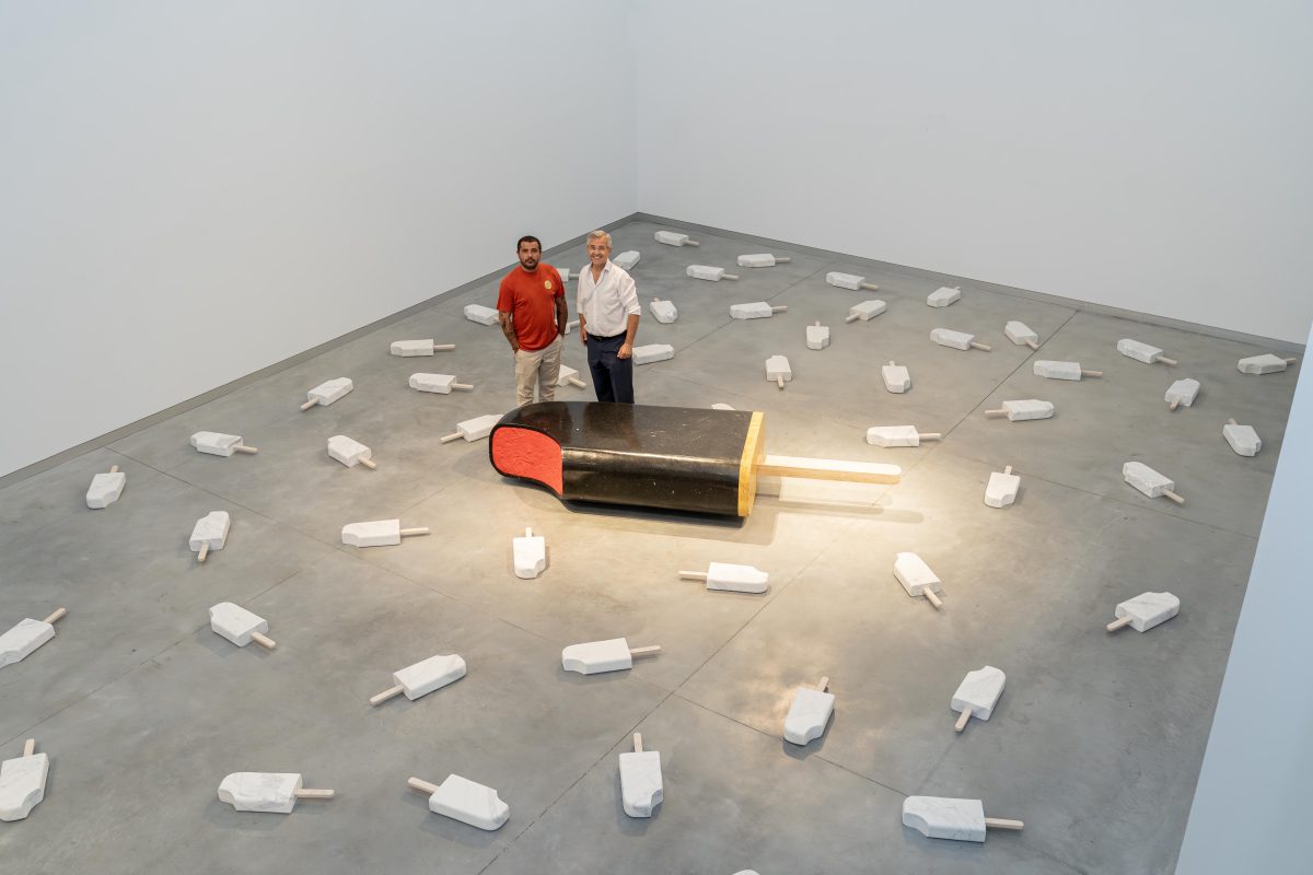 La colección incluye esculturas de helados como el Drácula, Pirulo y Fantasmiko, además de juguetes de playa, aletas de buceo, tablas de surf y patinetes. Las piezas están elaboradas en mármol y diferentes tipos de piedra utilizando métodos que van desde el corte con sierras diamantadas hasta la incrustación de estilo renacentista.